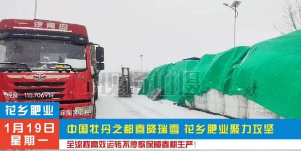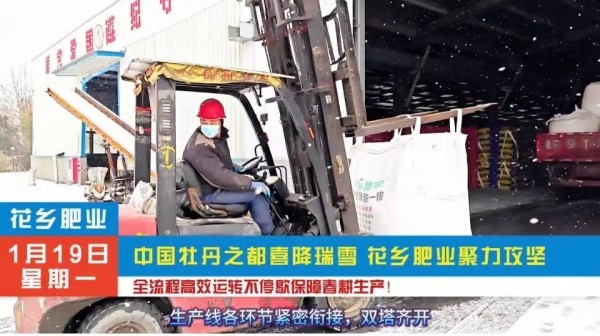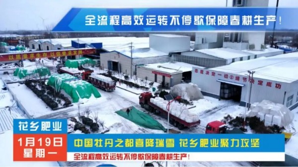 中國牡丹之都喜降瑞雪,漫天飛絮染白沃野,為新年蒙上一層祥瑞輕紗。當全城沉浸在初雪的靜謐中,花鄉肥業廠區內卻暖意涌動、機器轟鳴,全員堅守崗位聚力攻堅,以實干姿態筑牢春耕農資保障防線!