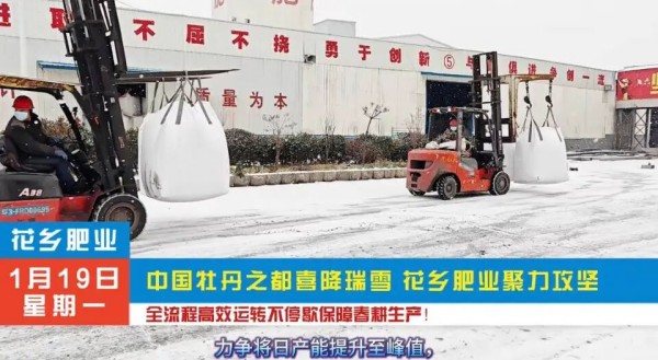 中國牡丹之都喜降瑞雪,花鄉肥業聚力攻堅 ,各條生產線開足馬力全力沖刺保障春耕生產!
